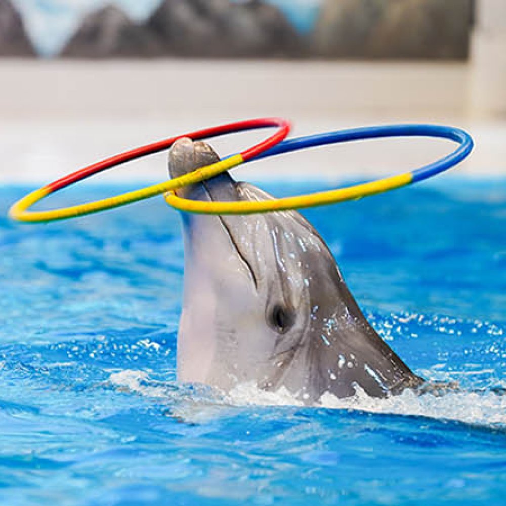 • Watch a thrilling 45-minute Dolphin and Seal show where these creatures paint, dance, play with balls, and jump through the hoops.